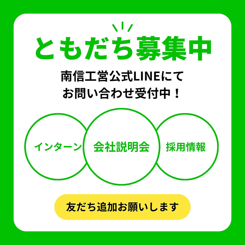リクルートに関するお問い合わせ窓口として、ぜひ南信工営の公式LINEをご活用ください⭕️🙇