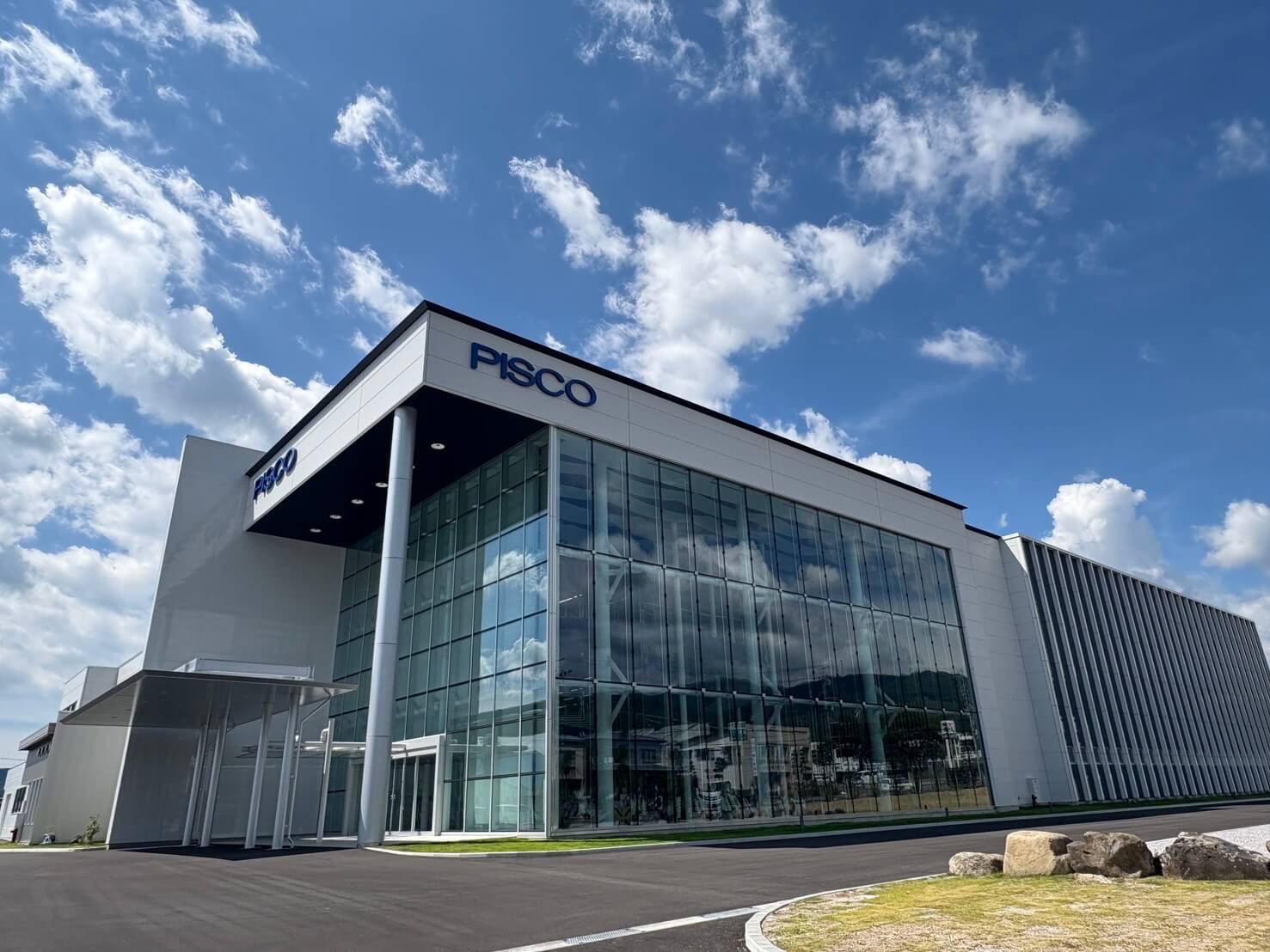 空圧機器メーカーとして業界を牽引されている株式会社日本ピスコ様の本社事務所・工場新築において、サッシ工事一式をご依頼いただきました。